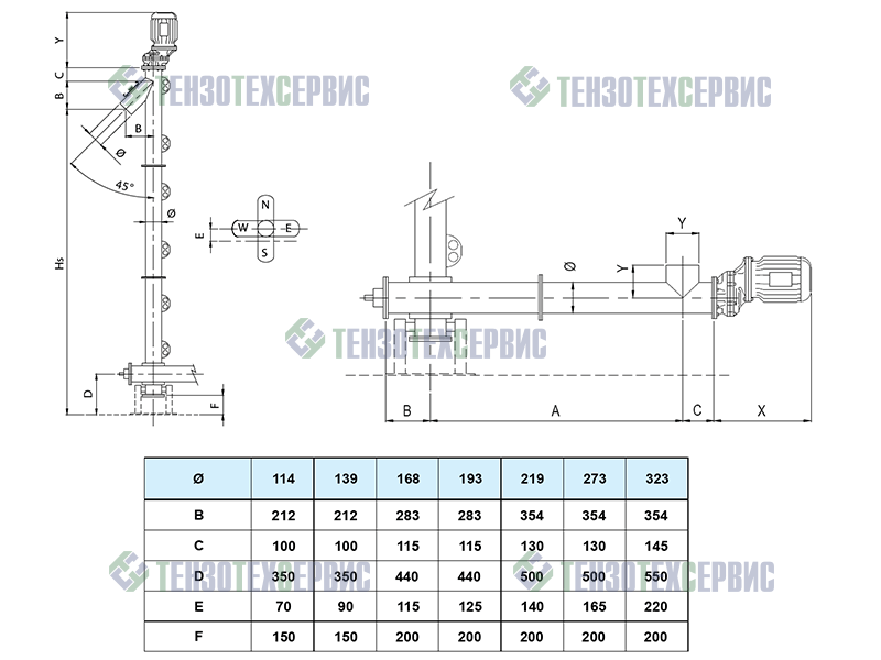 - Диаметр внешней трубы: 114, 139, 168, 193, 219, 273, 323 мм